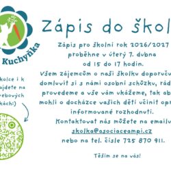 Milí rodiče, pokud hledáte školku pro Vaši ratolest, u nás na Kuchyňce najdete volné místo. Přijďte se podívat jak to u nás chodí. Zápis proběhne v úterý 23.5. od 15 hodin.